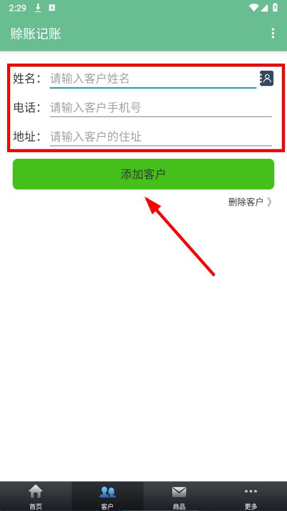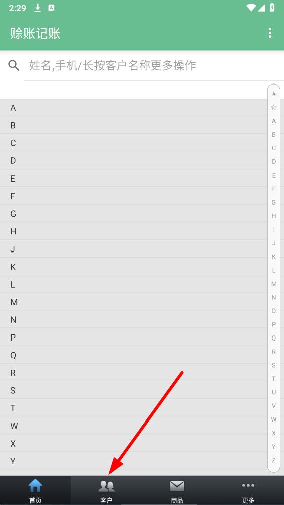 1、打開賒賬記賬app,點擊底部導(dǎo)航欄中的客戶選項,進入客戶管理頁面。