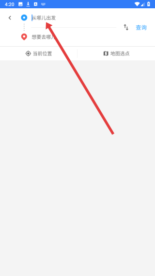 4、跳轉(zhuǎn)到路線規(guī)劃頁面中,可點(diǎn)擊輸入框填寫要出發(fā)的起點(diǎn)位置。