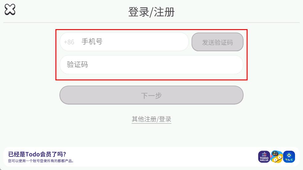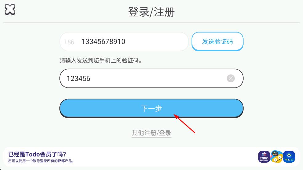4、輸入完成后,點(diǎn)擊“下一步”按鈕,按后續(xù)提示完成登錄或注冊(cè)操作。