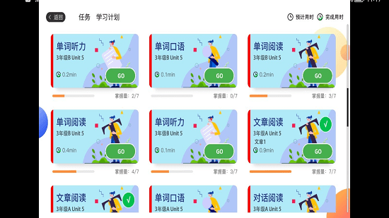 教材單元同步單詞,真人發(fā)音,支持單詞跟讀、測(cè)試和聽寫。
