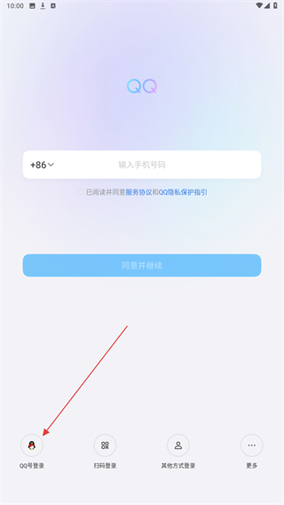 3、在QQ登錄的界面內(nèi),選擇并點擊左下角QQ號登錄的按鈕。
