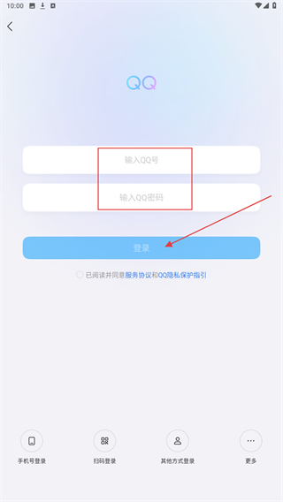 4、在改頁面內(nèi),輸入QQ號、密碼再點擊登錄的按鈕即可。