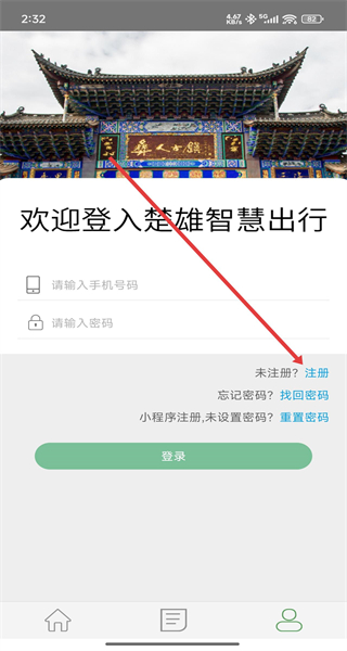 3、在登錄界面,點擊注冊選項,進入注冊界面。