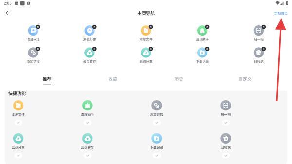 3、進入定制模式:點擊主頁導航界面右上角定制首頁,進入編輯狀態(tài)。