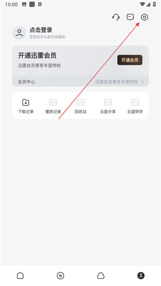 1、打開迅雷APP,點擊右上角的設(shè)置圖標。