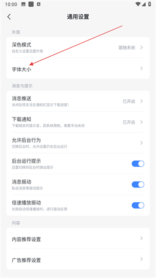 3、在通用設(shè)置頁面,點擊字體大小選項。