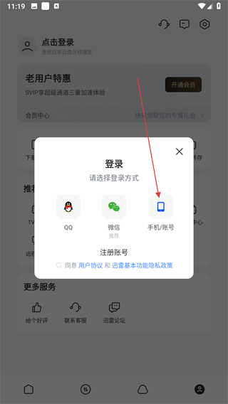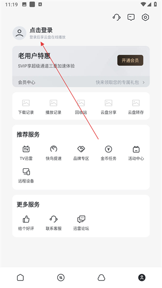 1、打開迅雷應(yīng)用,點擊頁面底部的個人中心選項,進入個人中心的功能頁面。