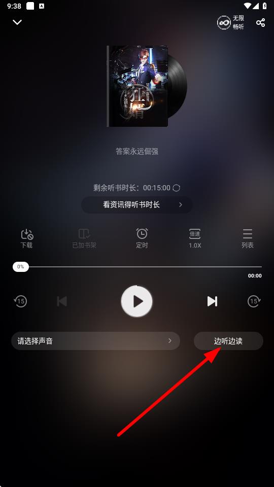 2、進(jìn)入聽書播放界面后,點(diǎn)擊邊聽邊讀按鈕,即可實(shí)現(xiàn)邊聽邊讀。