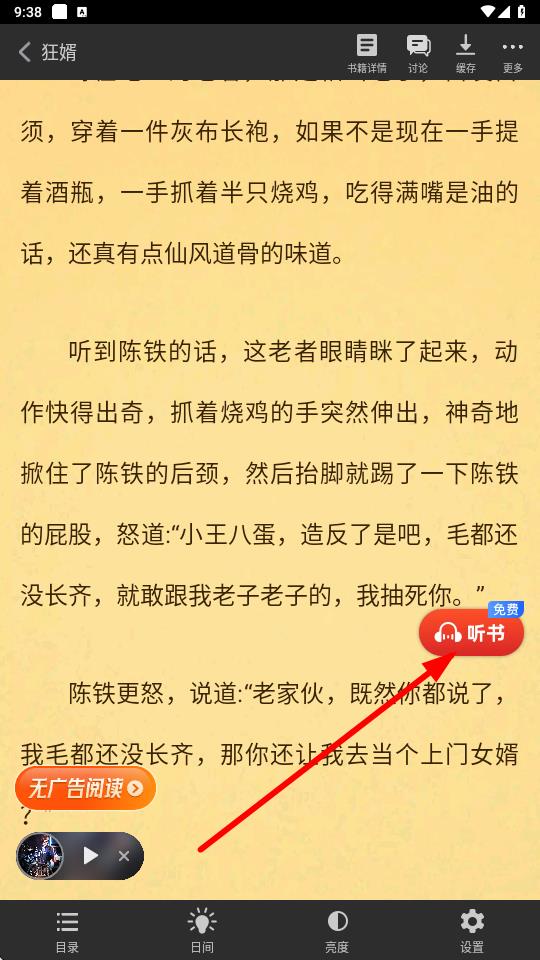 1、在書籍閱讀頁面,點(diǎn)擊聽書按鈕開啟聽書功能。