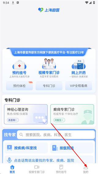 1、打開上海助醫(yī)APP,點(diǎn)擊導(dǎo)航欄中的我的。