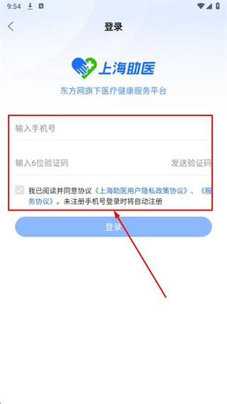 3、輸入手機(jī)號(hào),點(diǎn)擊發(fā)送驗(yàn)證碼并填入,勾選協(xié)議,點(diǎn)擊登錄,自動(dòng)完成注冊(cè)流程。