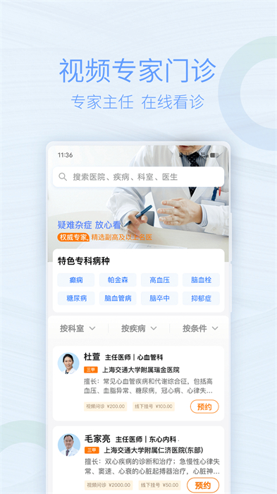 2、一線知名專家入駐,足不出戶與三甲醫(yī)院頂級(jí)專家面對(duì)面問診。