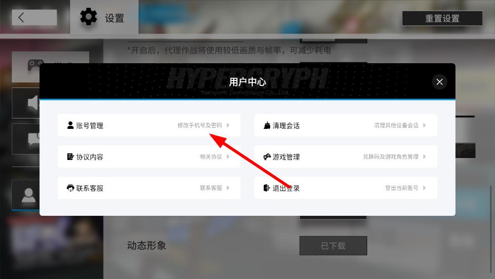 3、在用戶中心窗口里點(diǎn)擊賬號(hào)管理后的修改手機(jī)號(hào)及密碼選項(xiàng),進(jìn)入賬號(hào)管理頁(yè)面。