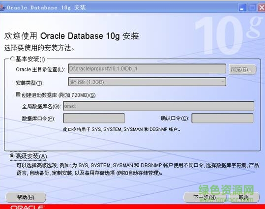 1、運(yùn)行“setup.exe”開(kāi)始,選中“高級(jí)安裝”,以便為SYS、SYSTEM設(shè)置不同的口令,并進(jìn)行選擇性配置。