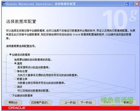 5、進(jìn)入“Oracle Universal Installer:選擇數(shù)據(jù)庫(kù)配置”