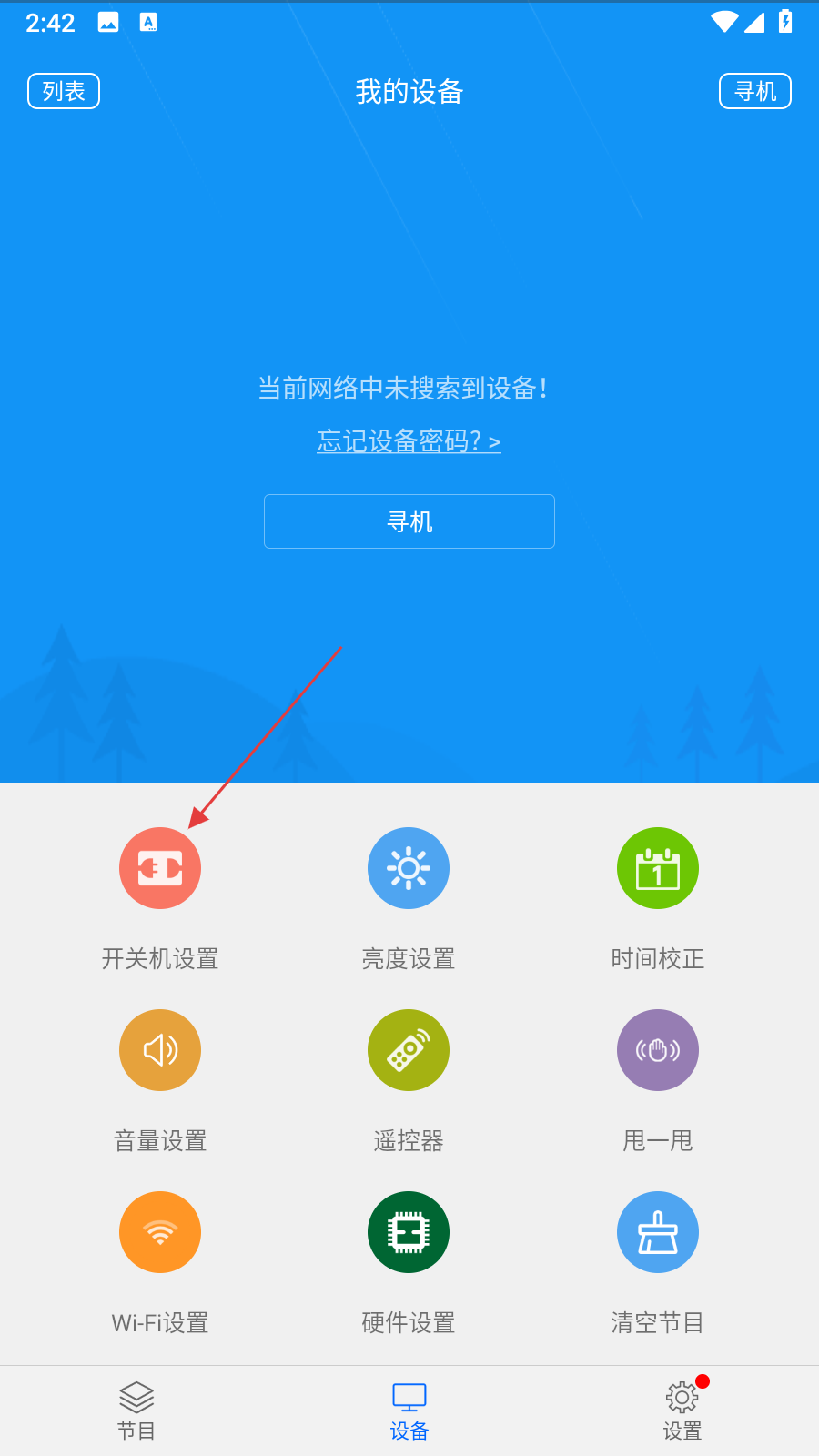 4、即可選擇設(shè)備,若當(dāng)前網(wǎng)絡(luò)未搜索到設(shè)備,可嘗試尋機功能或切換網(wǎng)絡(luò)連接。