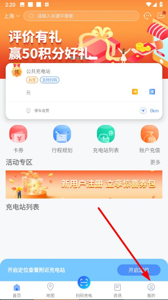 1、打開充電圈app,點擊底部導航欄中的我的選項,進入個人相關(guān)頁面。