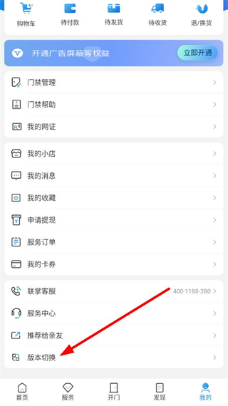 2、在我的頁(yè)面,點(diǎn)擊版本切換選項(xiàng),進(jìn)入版本切換頁(yè)面。