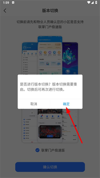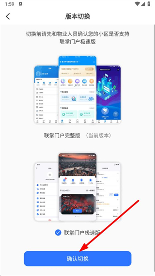 3、在版本切換頁(yè)面,點(diǎn)擊確認(rèn)切換按鈕。