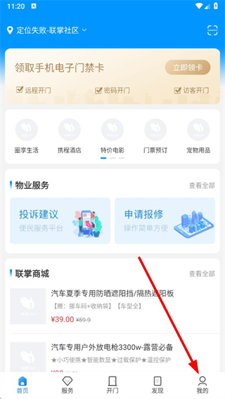 1、打開聯(lián)掌門戶app,點(diǎn)擊底部導(dǎo)航欄中的我的選項(xiàng)。