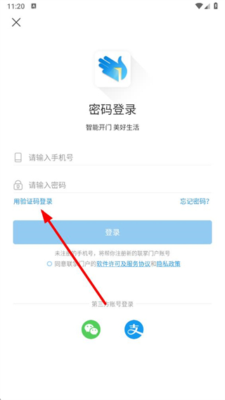 3、在登錄頁(yè)面,找到用驗(yàn)證碼登錄選項(xiàng)并點(diǎn)擊,切換至驗(yàn)證碼登錄的輸入界面。