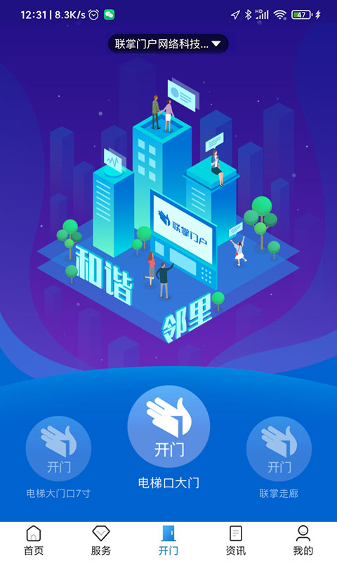聯(lián)掌門戶是一款專門為住戶日常生活使用的手機(jī)端APP。聯(lián)掌門戶通過(guò)實(shí)現(xiàn)視頻請(qǐng)求和通話,接收來(lái)自梯口機(jī)的訪客開門請(qǐng)求,住戶收到消息后能夠通過(guò)APP直接遠(yuǎn)程開門。同時(shí),該款A(yù)PP還為住戶提供廣告、物業(yè)公告等功能,方便和豐富住戶生活。