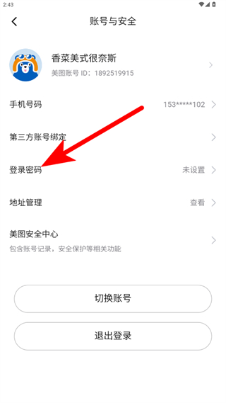 3、在賬號(hào)與安全頁(yè)面點(diǎn)擊登錄密碼,進(jìn)入安全驗(yàn)證頁(yè)面。