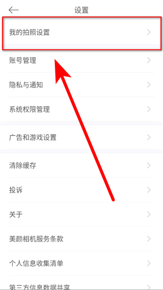 3、在設(shè)置頁(yè)面點(diǎn)擊我的拍照設(shè)置,進(jìn)入我的拍照設(shè)置頁(yè)面。