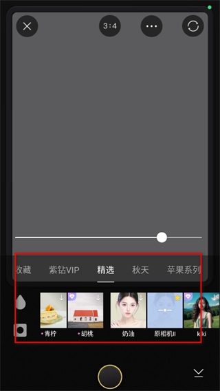 3、在拍照界面可選擇喜歡的濾鏡樣式,調(diào)整拍照參數(shù)。