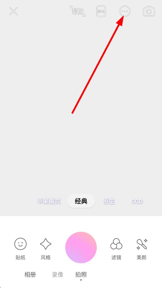 2、在拍攝界面,點(diǎn)擊上方…圖標(biāo),打開更多功能設(shè)置選項(xiàng)。