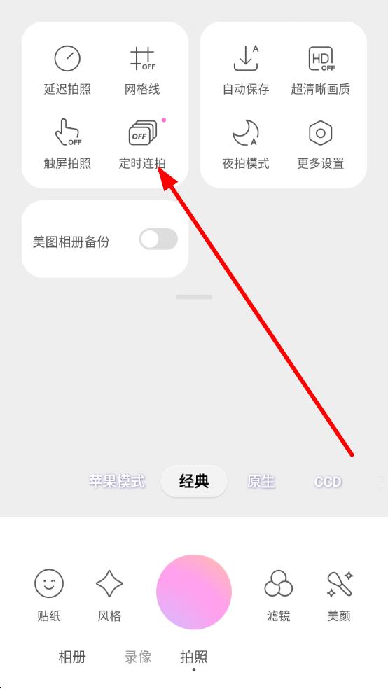 3、在設(shè)置菜單中,選擇定時(shí)連拍,即可開啟連拍模式進(jìn)行拍攝。