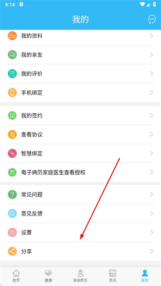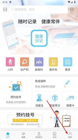 1、打開安徽醫(yī)療便民app,進(jìn)入首頁,點(diǎn)擊底部導(dǎo)航欄中的我的選項(xiàng)。