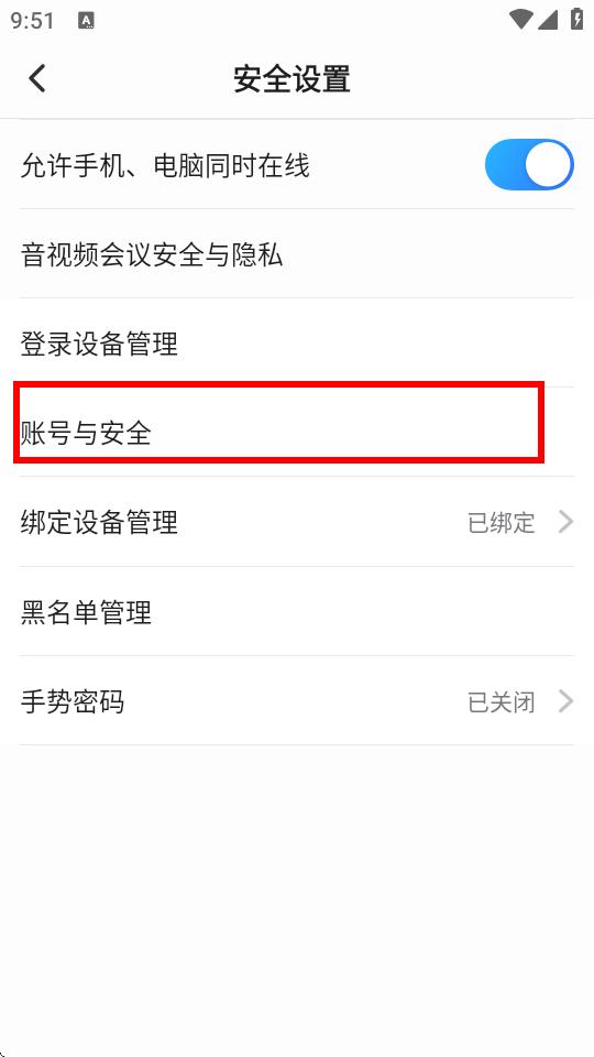 3、進(jìn)入安全設(shè)置頁面后,點擊賬號與安全。