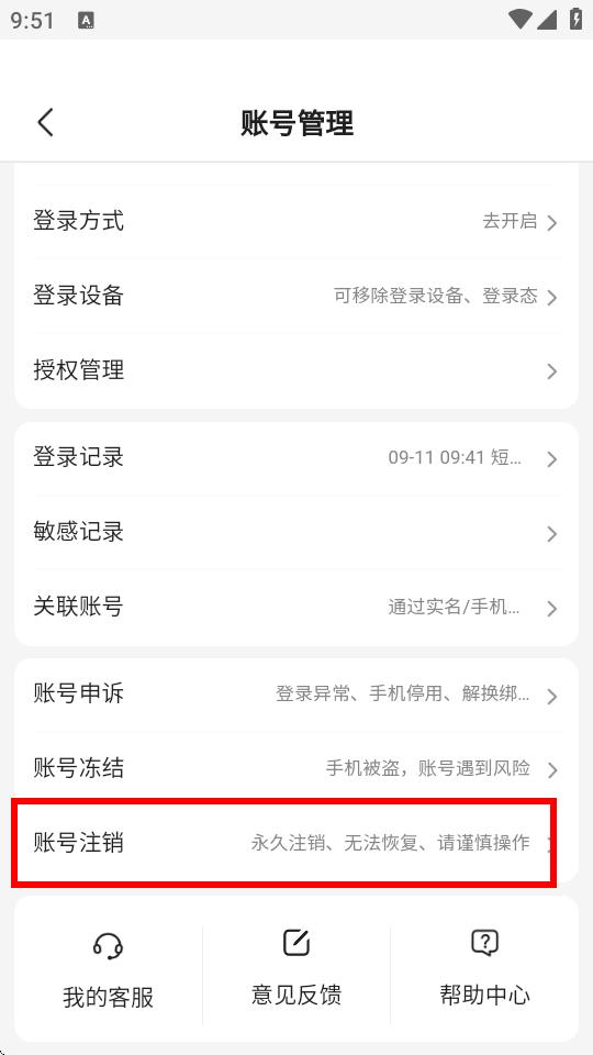 4、在賬號管理頁面,點擊賬號注銷,按照頁面提示完成身份驗證等相關(guān)操作后,即可注銷賬號。
