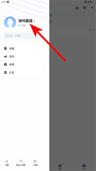 2、在彈出的側(cè)邊欄中,點擊自己的昵稱如快叫蓉姐。