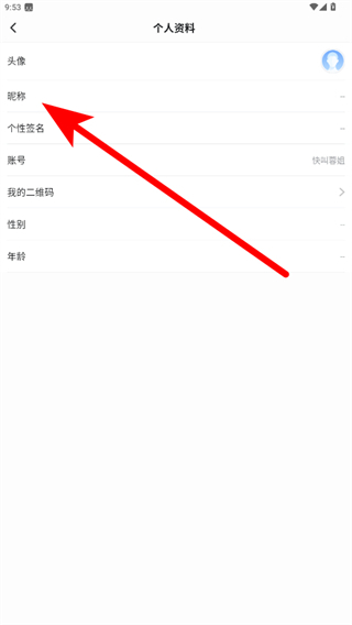 3、進(jìn)入個人資料頁面后,點擊昵稱選項。
