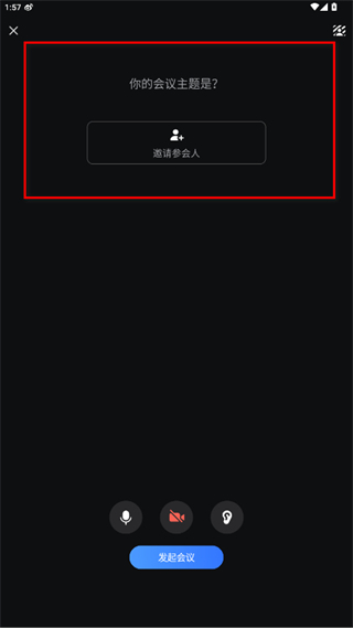 3、在會議發(fā)起頁面輸入會議主題,點擊邀請參會人添加參會人員。