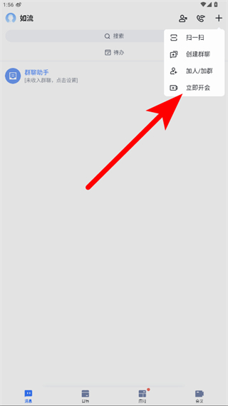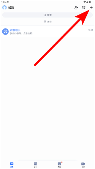 1、打開如流APP,在消息頁面點擊右上角加號,彈出功能菜單。