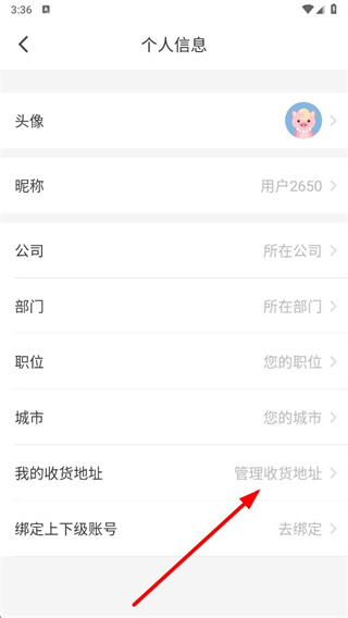 3、在個(gè)人信息頁(yè)面,點(diǎn)擊我的收貨地址選項(xiàng),進(jìn)入收貨地址頁(yè)面。