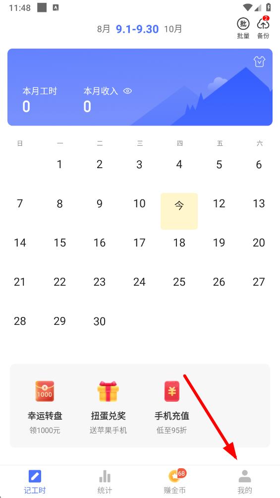 1、打開小時(shí)工記賬應(yīng)用,點(diǎn)擊底部導(dǎo)航欄最右側(cè)的我的選項(xiàng),進(jìn)入個(gè)人相關(guān)界面。