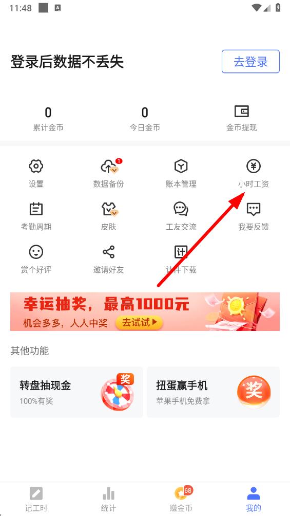 2、在個(gè)人界面中,找到并點(diǎn)擊小時(shí)工資選項(xiàng),進(jìn)入小時(shí)工資設(shè)置頁(yè)面。