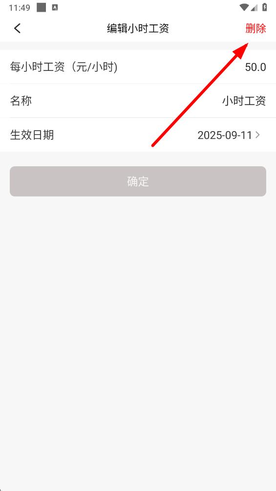 4、在編輯小時(shí)工資界面,點(diǎn)擊右上角的刪除按鈕,按照提示確認(rèn)操作后,即可刪除該小時(shí)工資。