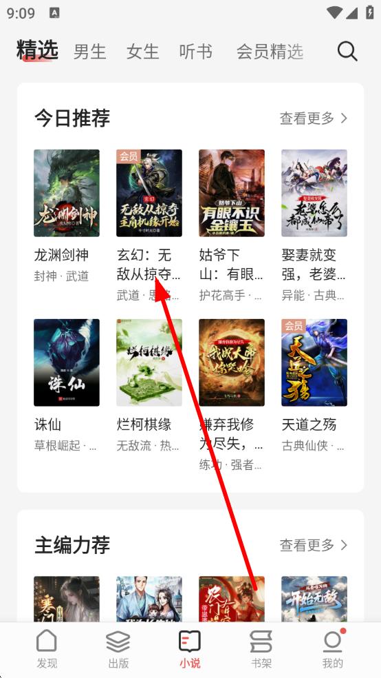 1、打開掌閱APP進入小說界面,在今日推薦中選擇想聽的小說。