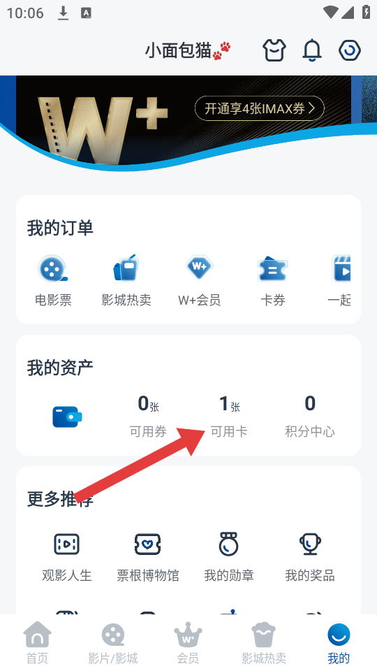 1、進入萬達影院APP的我的頁面,在我的資產(chǎn)模塊中點擊可用卡的選項,進入卡片管理的界面。