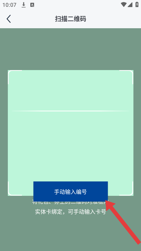 3、在掃描二維碼頁面,可將影享卡上的二維碼對準(zhǔn)掃描框,若需手動綁卡,點擊下方手動輸入編號按鈕,輸入卡號完成綁定。