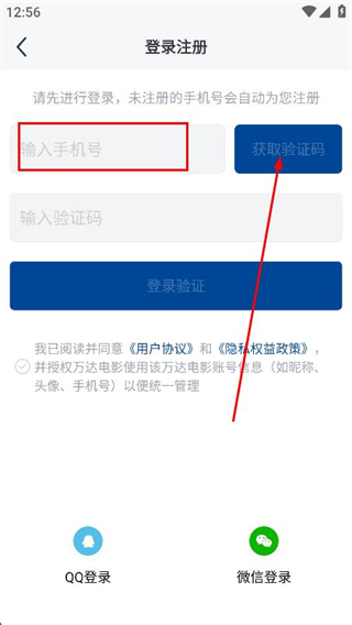 3、在登錄注冊頁面,填寫手機號,并獲取驗證碼。