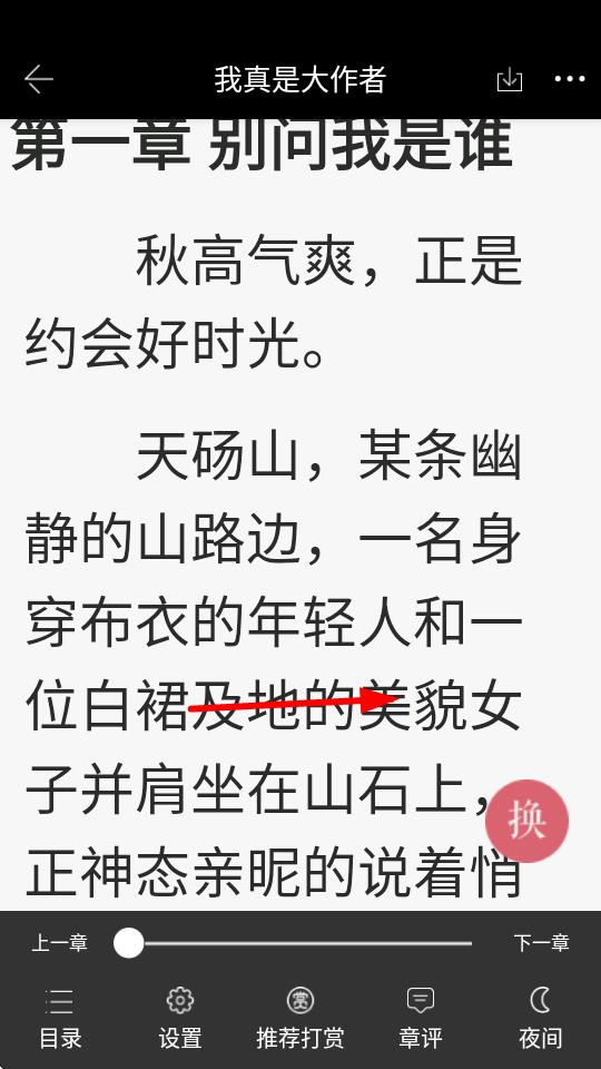 4、進(jìn)入閱讀界面后,即可開始閱讀小說內(nèi)容。通過點(diǎn)擊屏幕下方的上一章、下一章按鈕,或者滑動(dòng)屏幕,可以按順序?yàn)g覽小說全文。