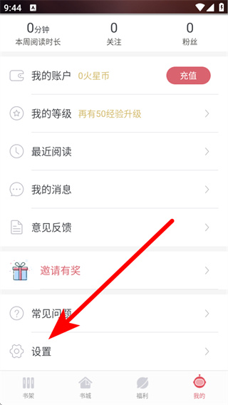 1、打開火星小說APP,點(diǎn)擊右下角我的,進(jìn)入個(gè)人的頁面。