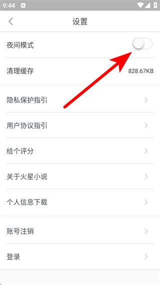 3、在設(shè)置的界面,點(diǎn)擊夜間模式的開關(guān),開啟夜間模式。