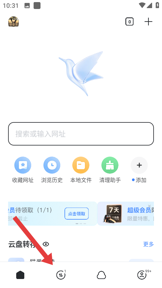 1、打開(kāi)迅雷APP的軟件,點(diǎn)擊底部導(dǎo)航欄中間的下載圖標(biāo),進(jìn)入下載的管理頁(yè)面。